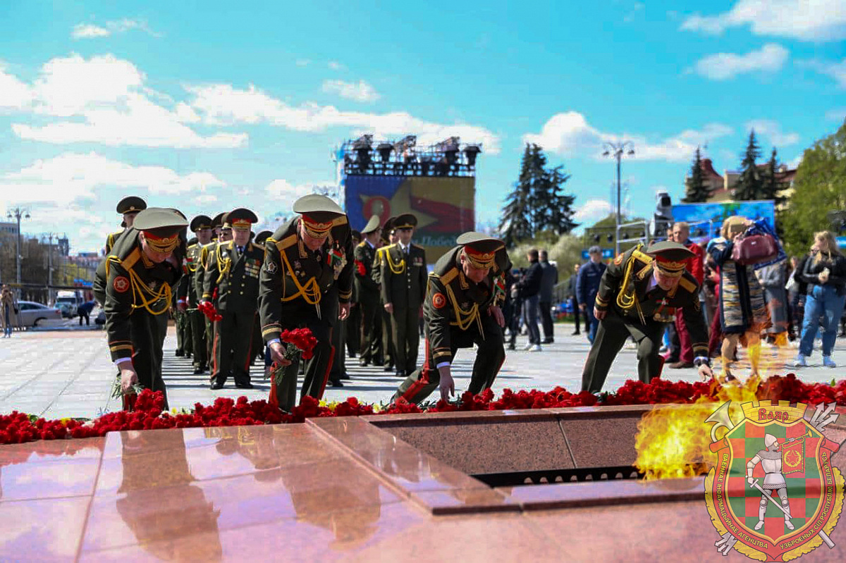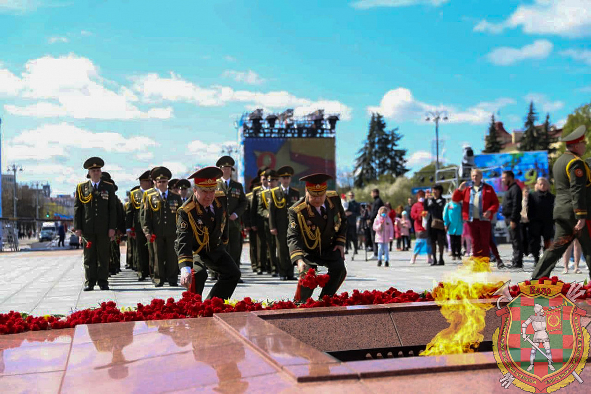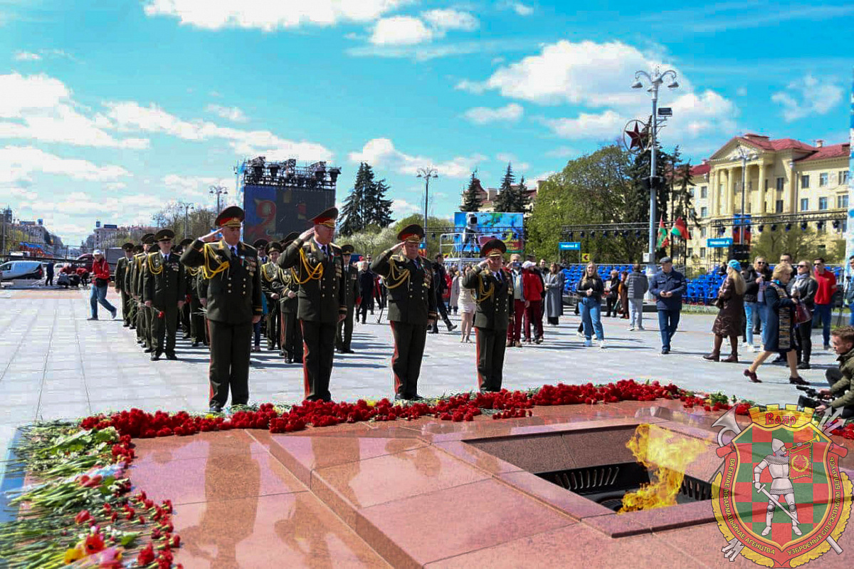 Руководящий состав Вооруженных Сил во главе с начальником Генерального штаба Вооруженных Сил - первым заместителем Министра обороны Республики Беларусь генерал-майором Виктором Гулевичем возложили цветы к монументу Победы.