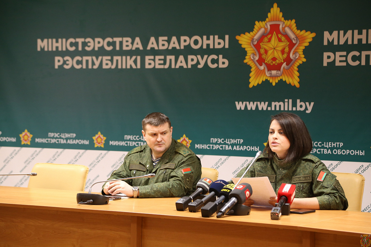 Сегодня в Министерстве обороны Беларуси состоялся брифинг официального представителя Министерства обороны Республики Беларусь майора Инны Горбачевой, посвященный работе средств массовой информации во время второго этапа проверки сил реагирования Союзного государства на территории Республики Беларусь.