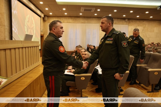 С приветственным словом к присутствующим обратился Министр обороны Республики Беларусь генерал-лейтенант Виктор Хренин. Глава военного ведомства отметил, что кадровая обстановка остается стабильной. Министерство обороны уделяло и продолжает уделять внимание решению вопроса укомплектованности Вооруженных Сил военными кадрами.