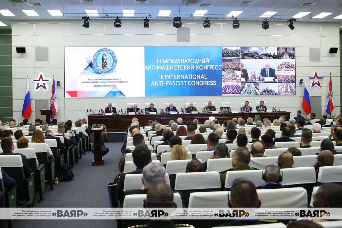 Представители белорусской военной делегации во главе с Министром обороны генерал-лейтенантом Виктором Хрениным принимают участие в III Международном антифашистском конгрессе «За единство всех антифашистских сил, за полную победу над нацизмом».