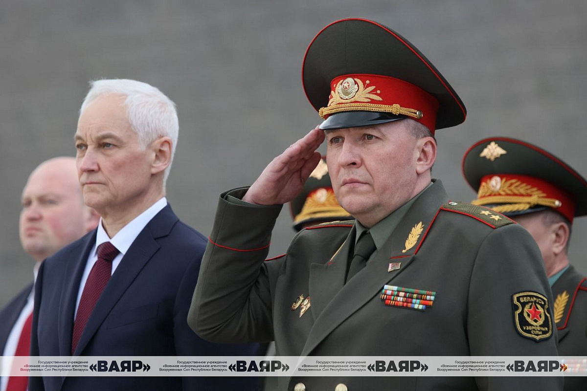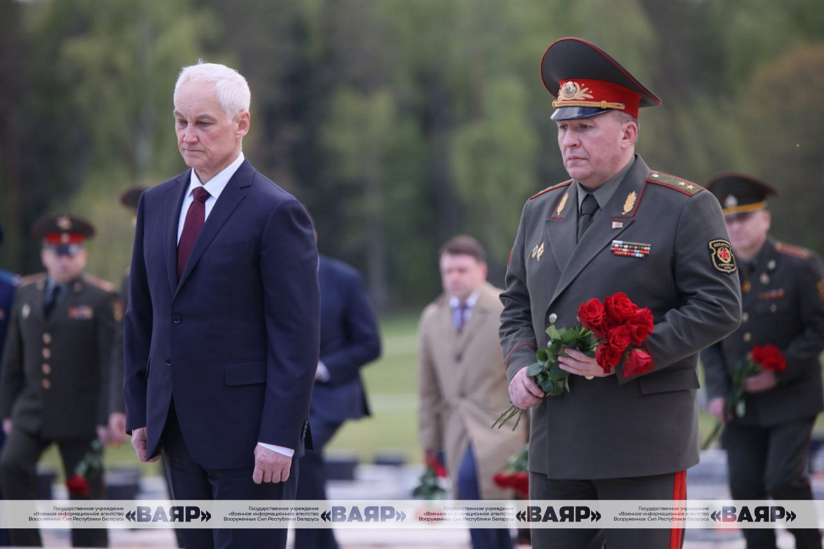 Министр обороны Республики Беларусь генерал-лейтенант Виктор Хренин и Министр обороны Российской Федерации Андрей Белоусов возложили цветы в мемориальном комплексе «Хатынь».