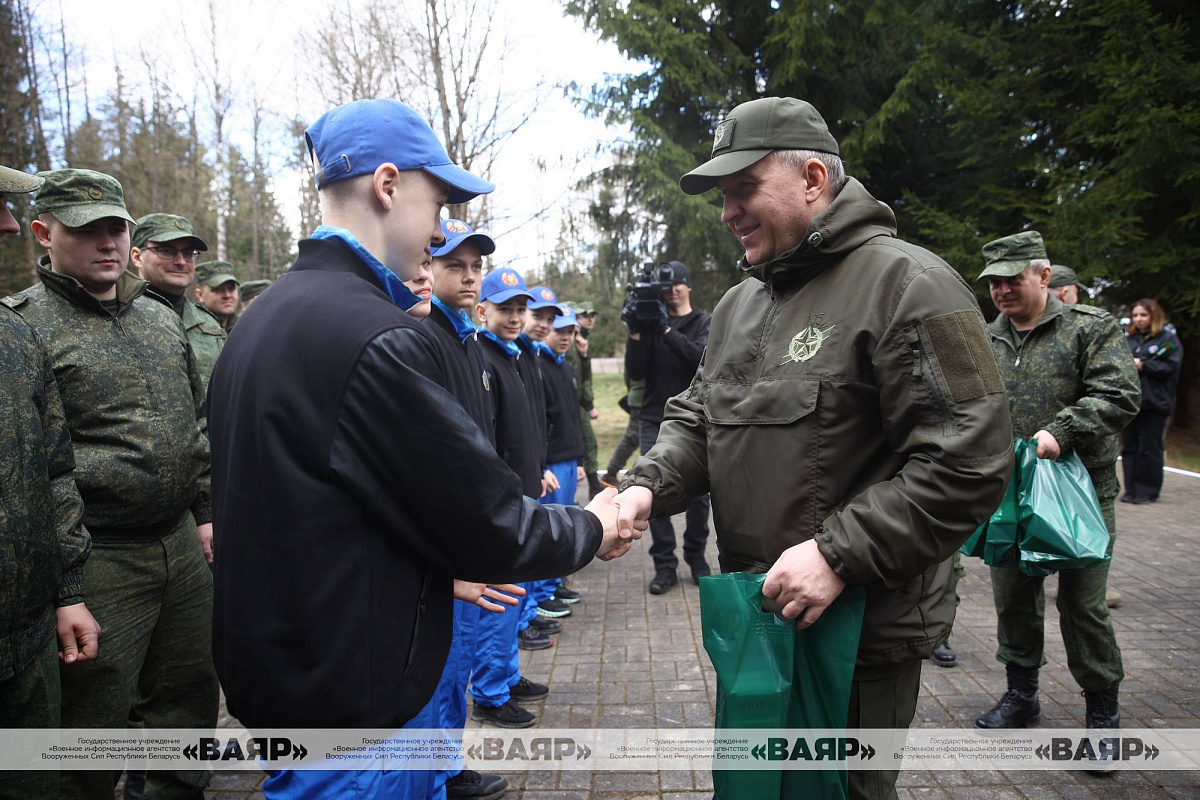 Министр обороны Беларуси генерал-лейтенант Виктор Хренин прибыл в деревню Кайково, где вместе с суворовцами и офицерами Вооруженных Сил участвует в республиканском субботнике и благоустройстве монумента, воздвигнутого в честь боевого пути партизанской бригады имени Калинина.