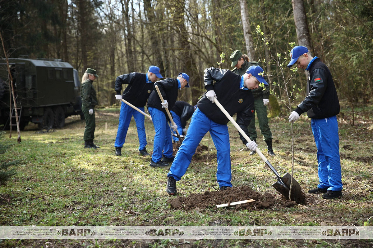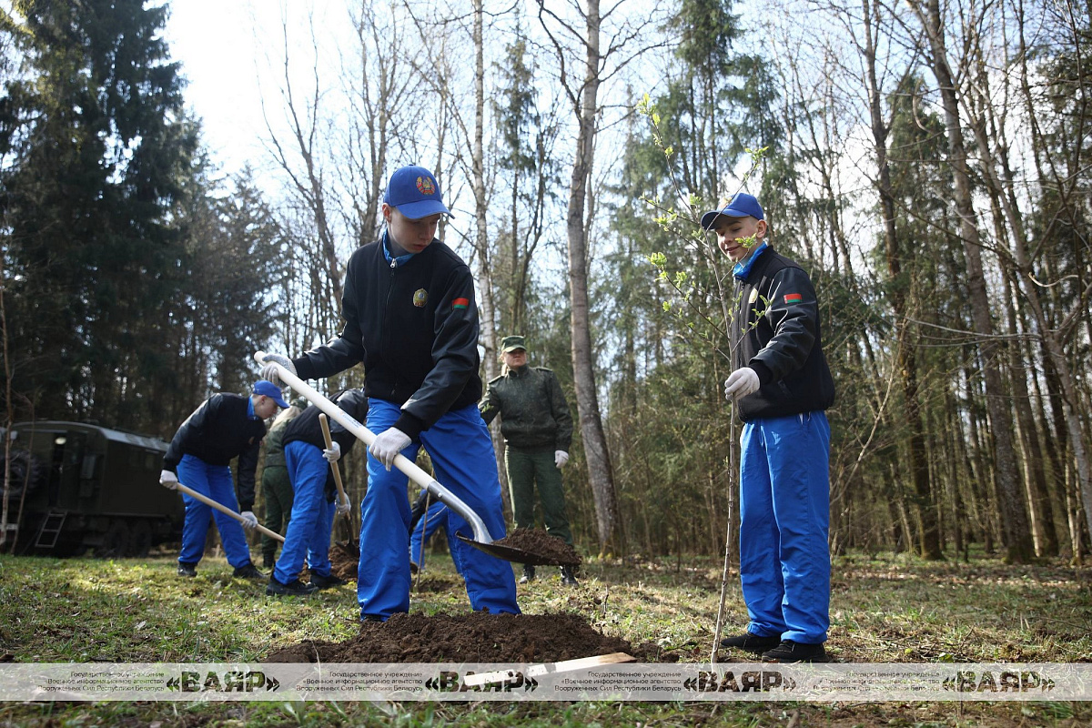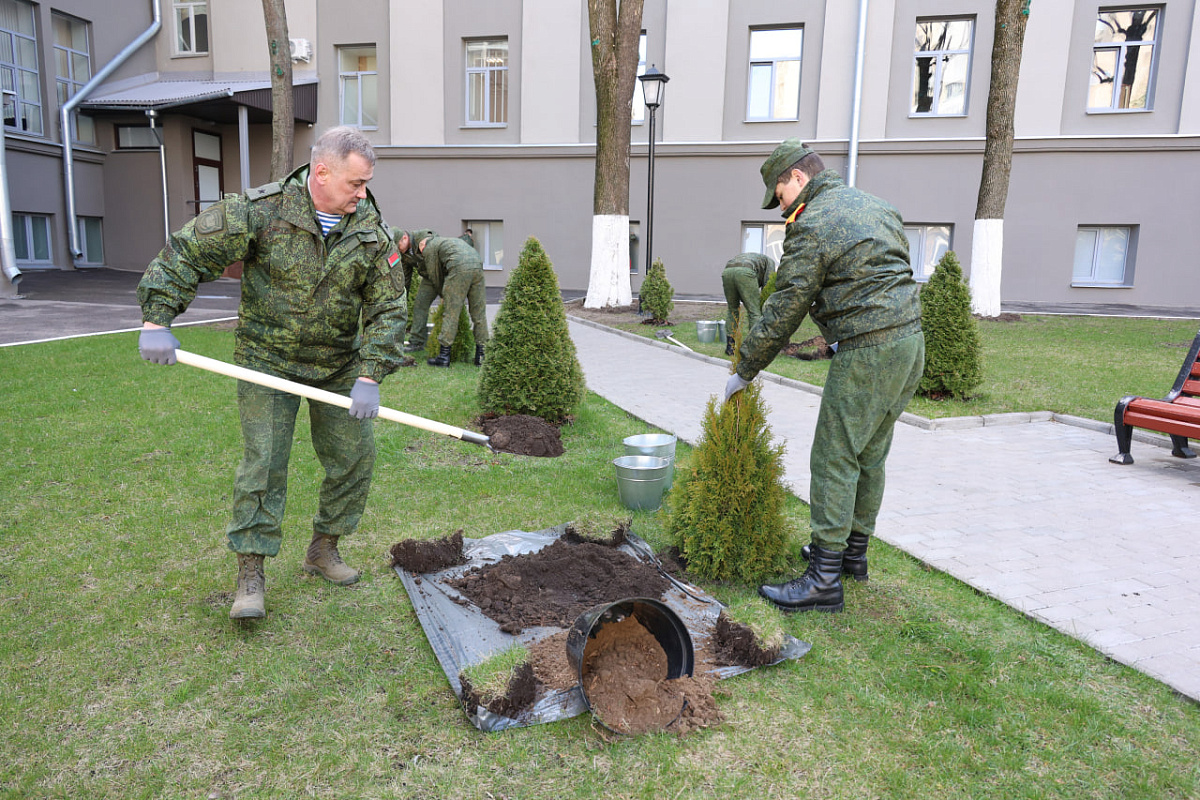 Вместе с воспитанниками МСВУ в республиканском субботнике принимает участие заместитель Министра обороны Республики Беларусь генерал-майор Александр Науменко, выпускник Минского СВУ 1988 года. Он вместе с суворовцами 3-й роты высаживает туи на аллее у бюста генералиссимуса Александра Суворова.